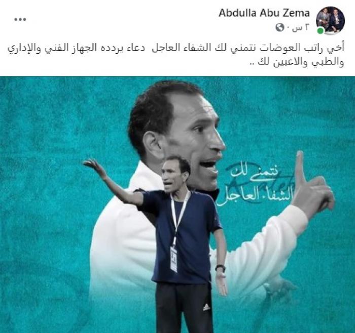 وقال أبو زمع في المنسور" اخي راتب العوضات نتمني لك الشفاء العاجل دعاء يردده الجهاز الفني والإداري والطبي والاعبين لك ".