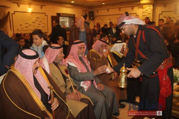 وتقدم جاهة اهل العريس النائب السابق حمد ابو زيد وكان باستقبالهم جمع غفير من اهالي سحاب على راسهم اللواء محجوب المحارمة والشيخ حمد عيد ابوحماد.