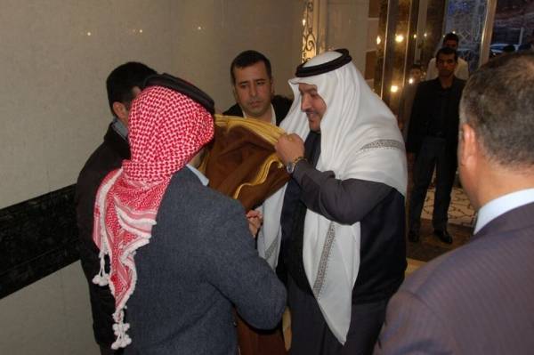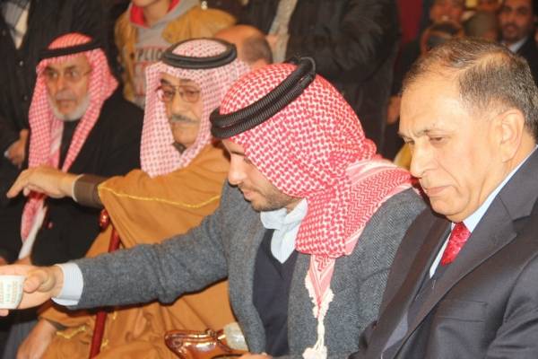 النائب ابوزيد طلب فاعطى عن اهل العروس سمو الامير حمزة بن الحسين.