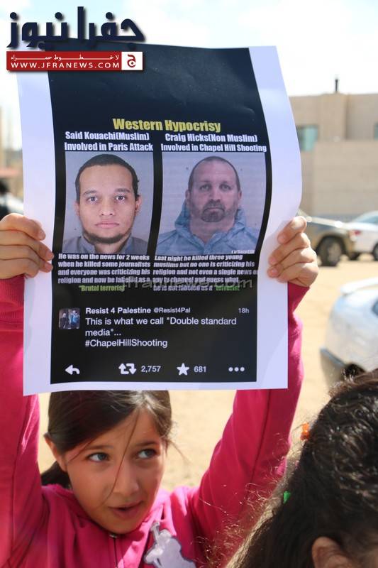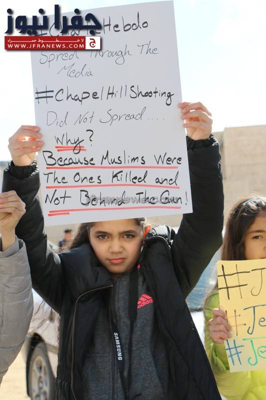 وقال مشاركون لـ"جفرا نيوز" أن هذا الاعتصام جاء بتنسيق غير مسبق وبدافع من سؤال اطفالهم (لماذا لا ندافع عن المسلمين المقتولين في أميركا ونعتصم من أجلهم ) ومن هنا جائت الفكرة للتضامن وايصال صوت الإسلام الى العالم والذي لم يلفت إنتباه الإعلام الغربي الأجنبي كما حصل في جريمة "شارلي إيبدو" او أنها جريمة ليس لديها أي إهتمام كون المقتولين مسلمين .