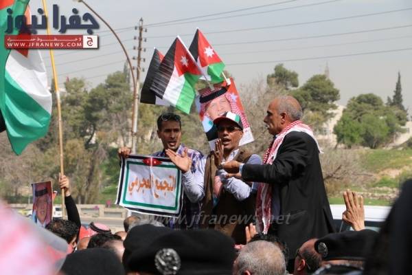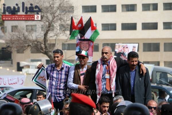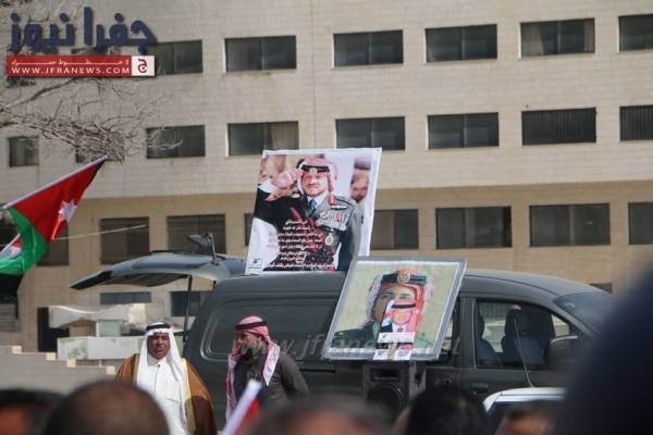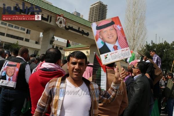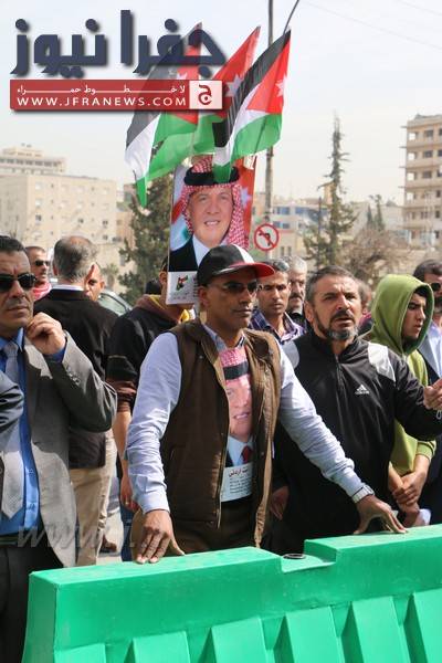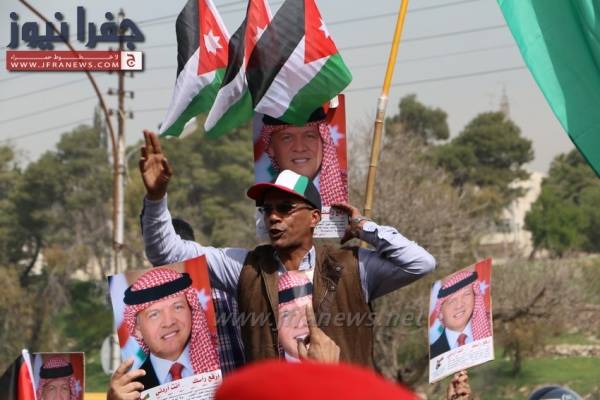 ووزع المشاركون منشورات على المارة وصوراً للملك وأعلام الأردن.