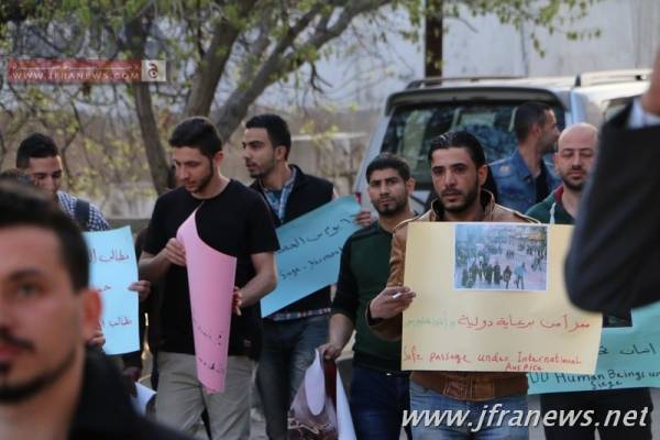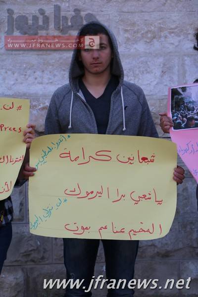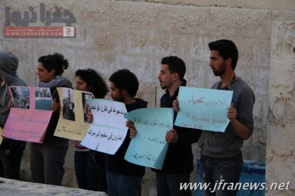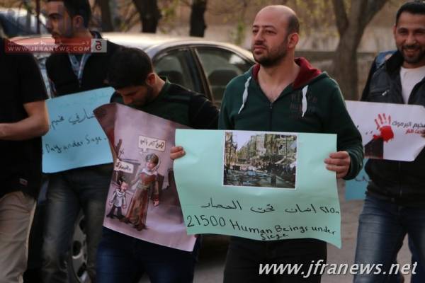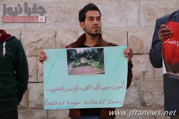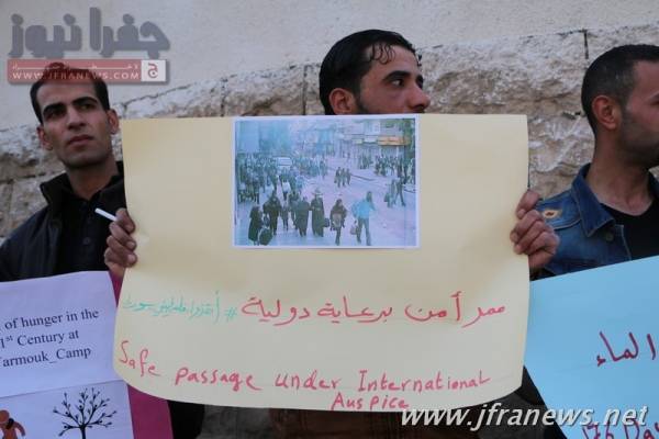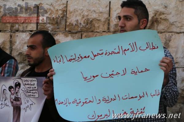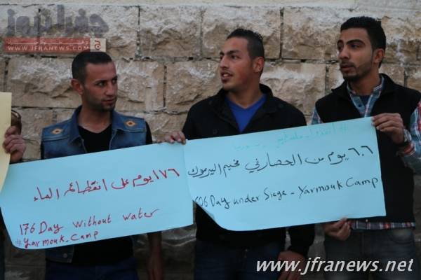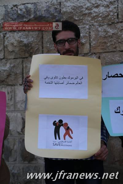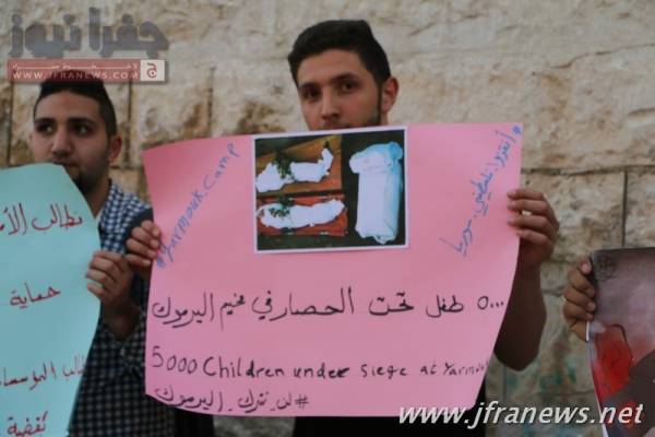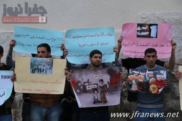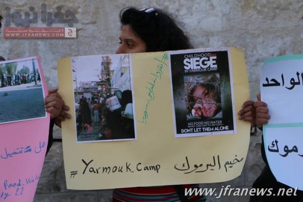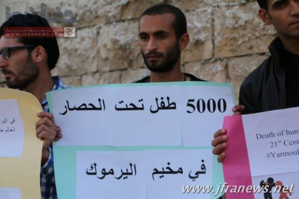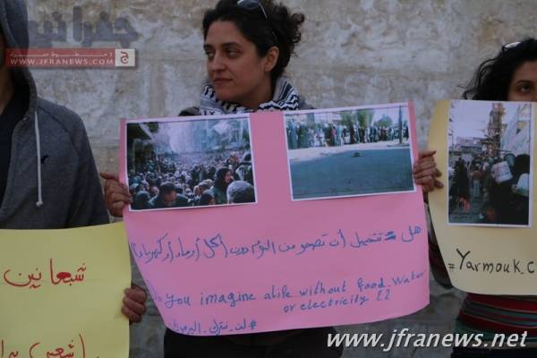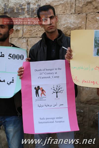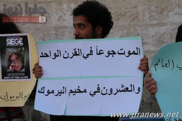 اعتصم عدد من نشطاء كتلة الوحدة الطلابية في الجامعات الأردنيه مساء اليوم الخميس أمام منظمة الأمم المتحدة في منطقة الشميساني للمطالبة بفك الحصار على مخيم اليرموك وان تتحمل المنظمة كامل المسؤولية بفك هذا الحصار عن المخيم من قبل النظام في سوريا والذي أصبح الآن حصاراً قاتلاً بسبب الجوع و نقص العناية الطبية وتدهور الأوضاع .