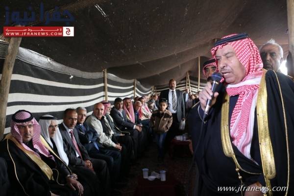 وترأس الجاهة بالطلب من آل الحنيطي رئيس مجلس النواب عاطف الطراونه الذي أشاد بهذا النسب بين العائلتين حيث إستقبل بالرد عن عشيرة الحديد الشيخ برجس الحديد مرحباً بالجاههة الكريمة الذي أشاد بها وبشيوخها ورجالاتها .