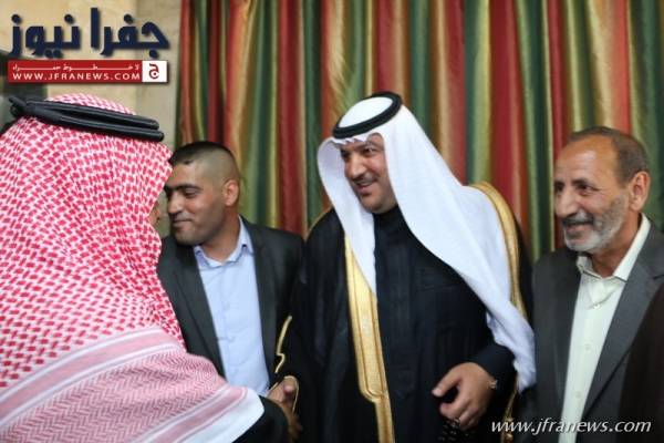 وكان في إستقبال الجاهة عدد كبير من شيوخ العشائر وأصحاب السعادة والأصدقاء و الأقارب .