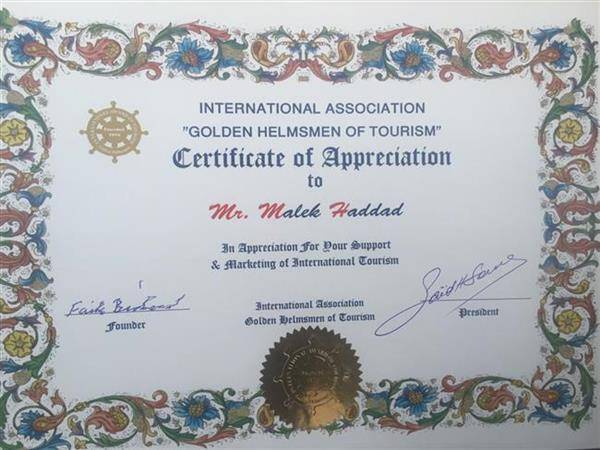 ويأتي التكريم لحداد تقديراً لمساهماته في تشجيع السياحة الداخلية بالتعاون مع وزارة السياحة وسلطتي مفوضية العقبة والبترا.