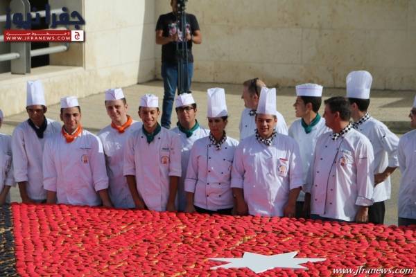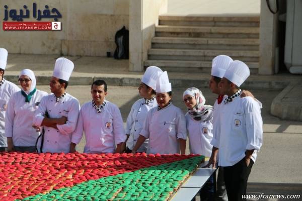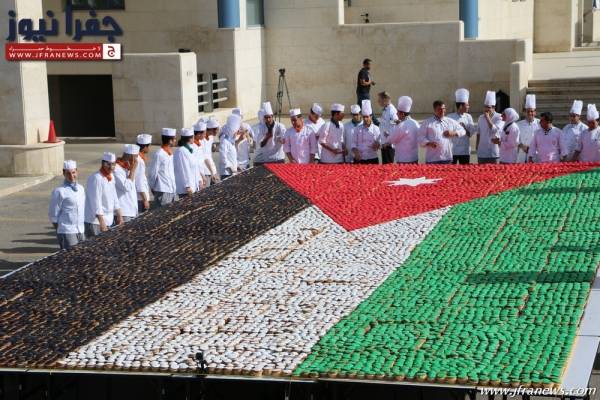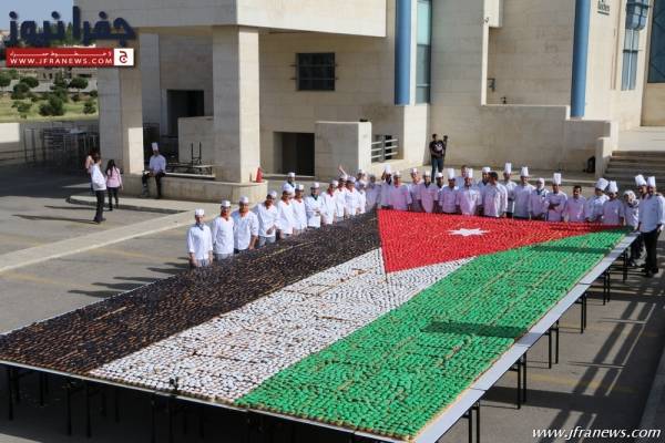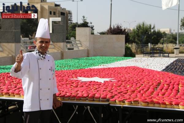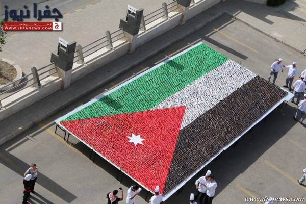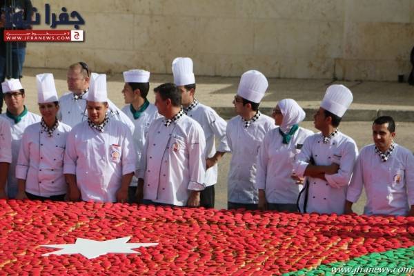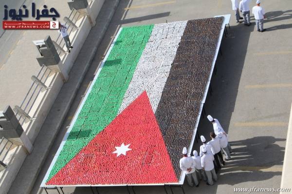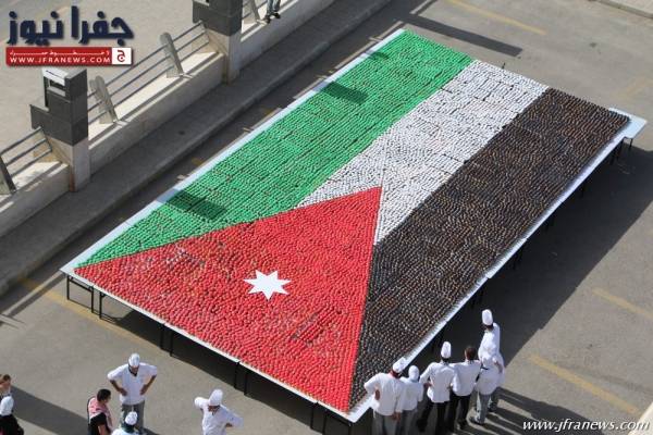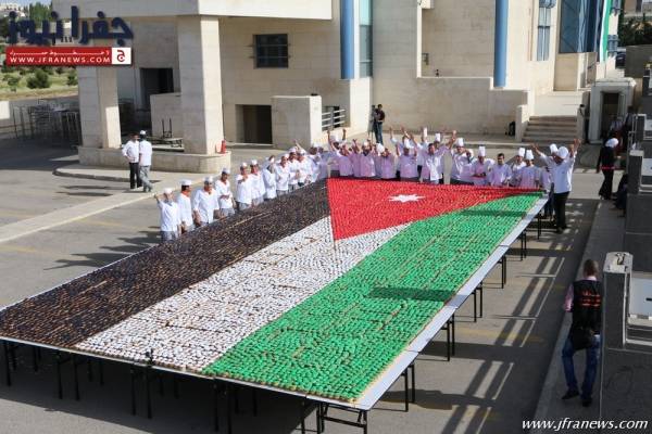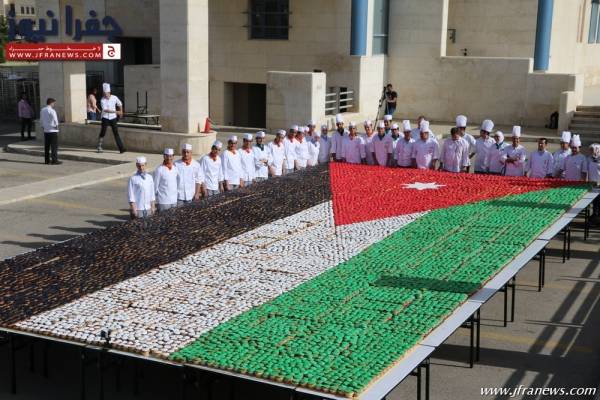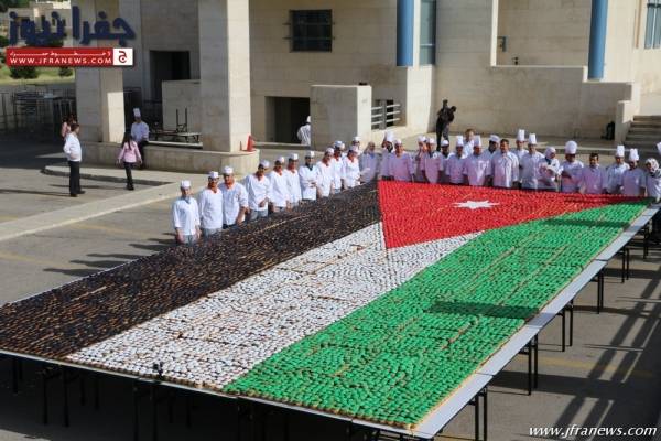 قامت الأكاديمية الملكيه لفنون الطهي صباح اليوم الإثنين بتشكيل أطول علم للأردن من الحلوى والذي بلغ طوله 12 × 6 متر في ساحة الأكاديمية والذي تكون من 15 الف قطعة (كب) كيك وهذا اكبر تجمع لقطع الحلوى على مستوى الشرق الاوسط .