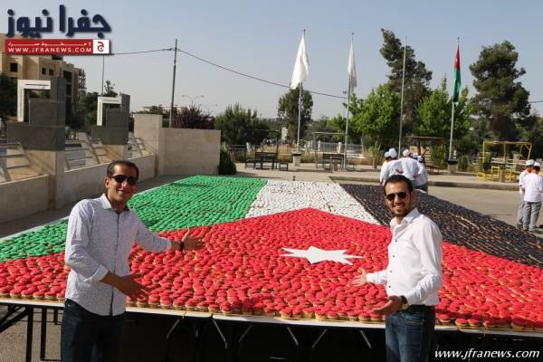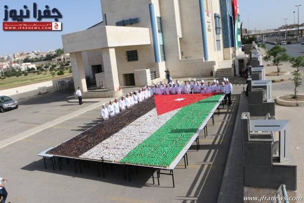 15 الف قطعة حلوى لتشكيل العلم الاردني بمناسبة يوم الاستقلال (صور)