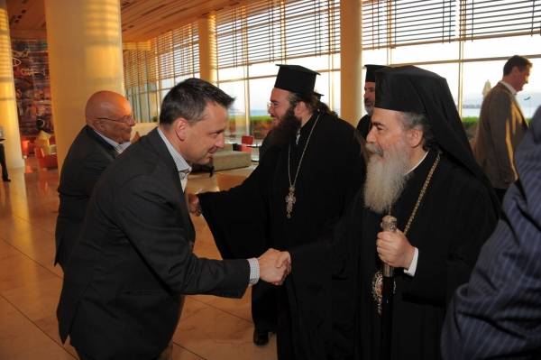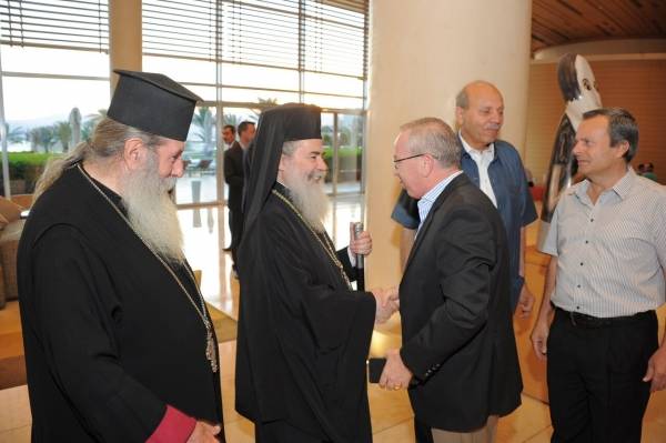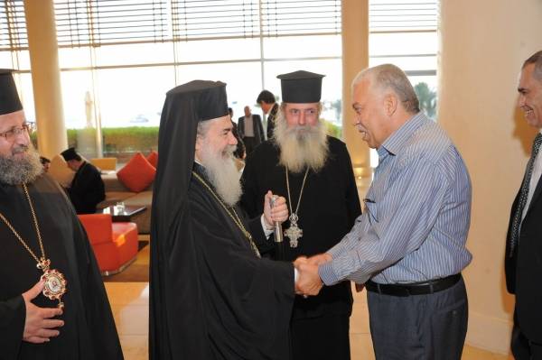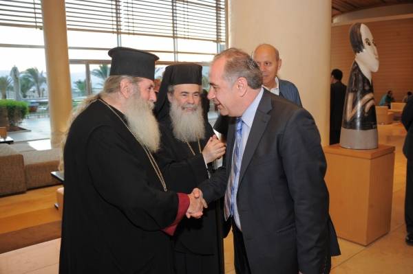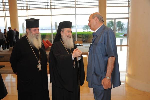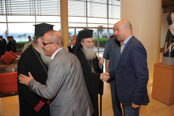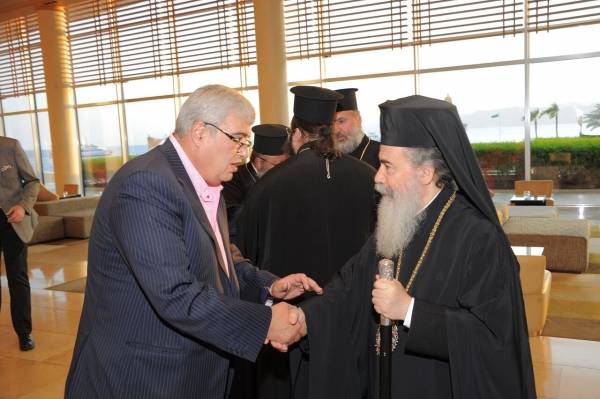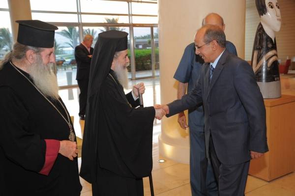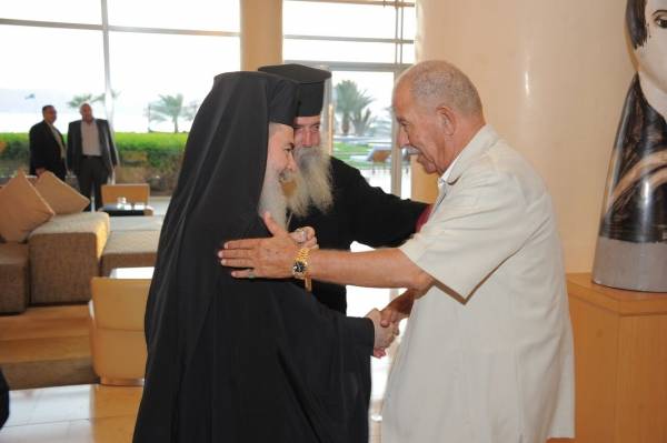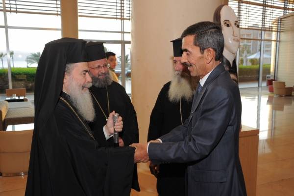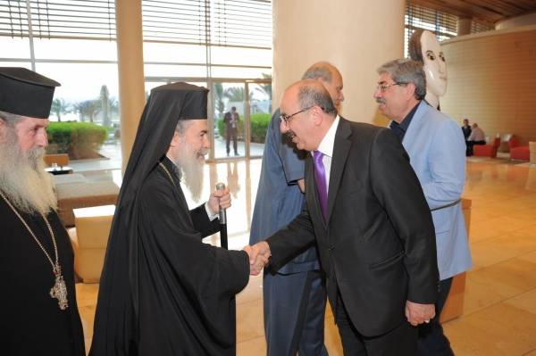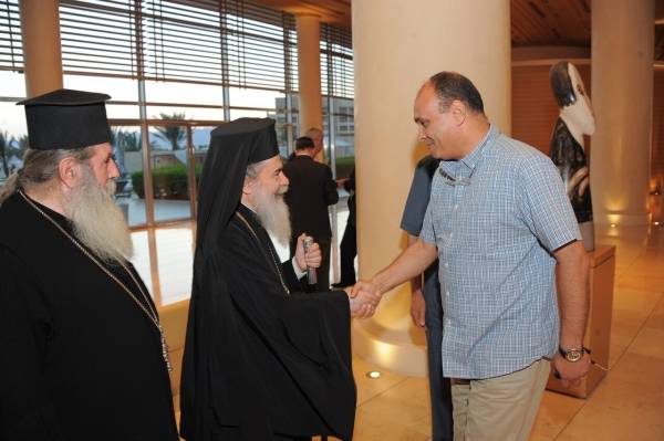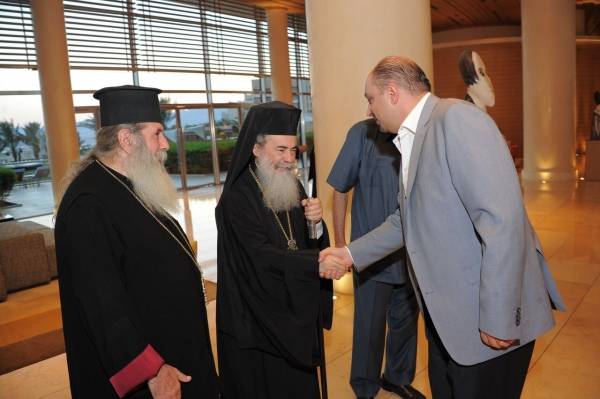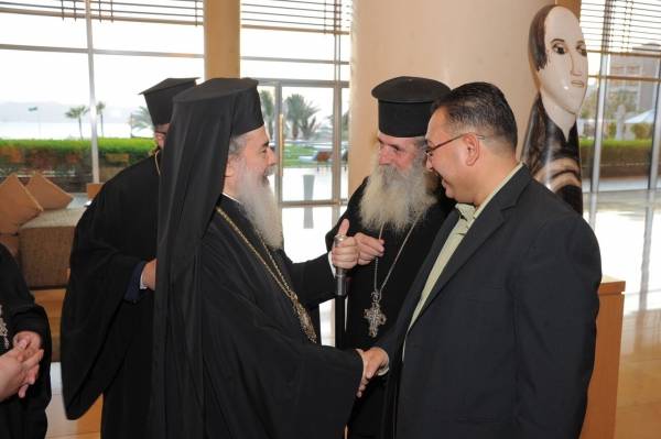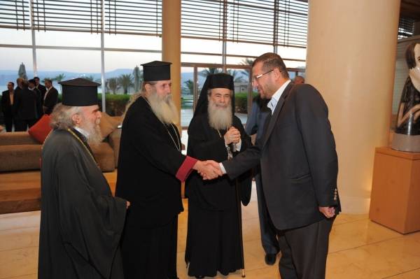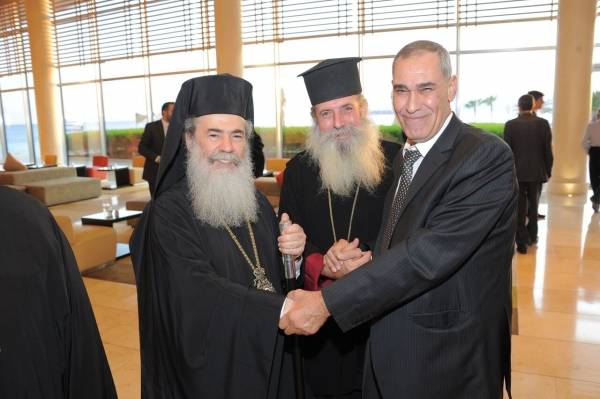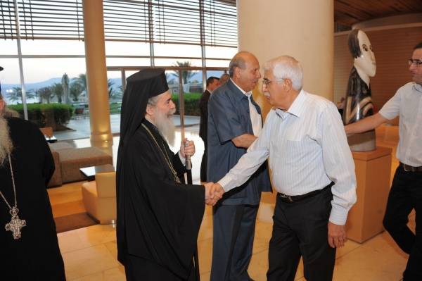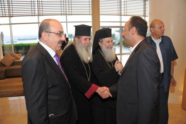جفرا نيوز- اقامت طائفة الروم الارثوذوكس في مدينة العقبة حفل افطار بمناسبة حلول شهر رمضان المبارك في فندق كمبنسكي العقبة، بحضور رئيس مجلس مفوضي سلطة منطقة العقبة الاقتصادية الخاصة معالي الدكتور هاني الملقي ومحافظ العقبة عطوفة السيد فواز ارشيدات بالإضافة الى مسؤولين ووجهاء المجتمع المحلي في مدينة العقبة حيث كان باستقبال الحضور غبطة البطريرك ثيوفيلوس الثالث بطريرك القدس وسائر أعمال فلسطين والأردن، وخلال ترحيب غبطة البطريرك ثيوفيلوس الثالث بالحضور الكريم اكد على اهمية العيش الاسلامي المسيحي في بلادنا وتأصله في عاداتنا وتقاليدنا وقيمنا الاردنية الاصيلة وشدد على حكمة القيادة الهاشمية في دفع دفة المسيرة نحو التقدم والازدهار لبلدنا الحبيب في ظل حادي ركبها صاحب الجلالة الملك عبدالله الثاني ابن الحسين المعظم حفظة الله ورعاة