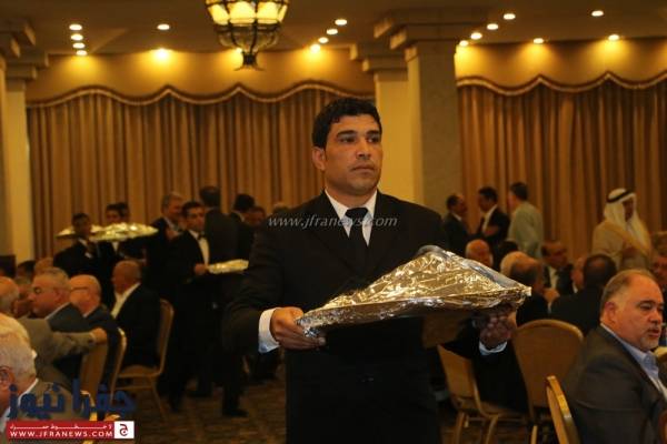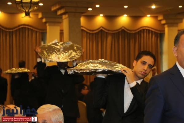 اقيمت بعد ظهر اليوم السبت مأدبة غداء في قاعات المدينة الرياضية بمناسبة حفل زفاف إبن رئيس الوزراء الاسبق علي أبو الراغب (محمد) على كريمة حسان الرجال (دينا).
