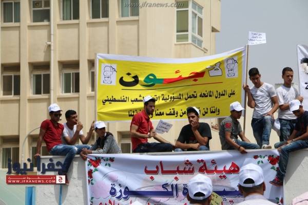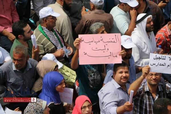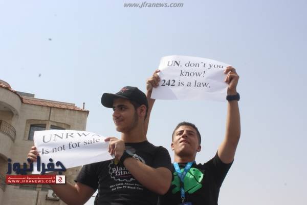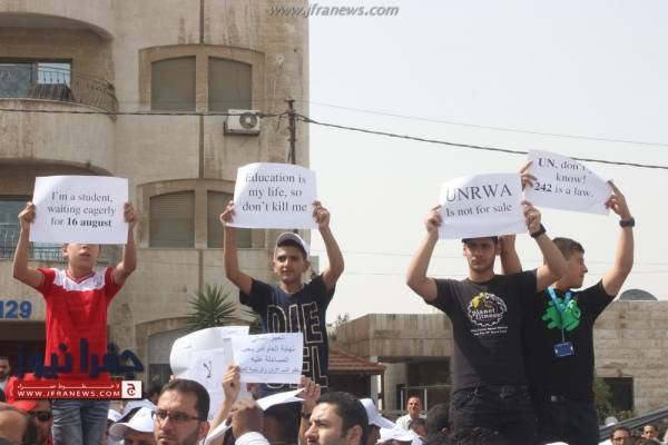 نفذ عاملو وكالة غوث وتشغيل اللاجئين الفلسطينين "الاونروا"، في ظهر اليوم الأربعاء أعتصاماً أمام منظمة الأنوروا في منطقة بيادر وادي السير ، وفي هذا الإثناء اعلنوا الموظفين توقفهم عن العمل احتجاجا على تهديد تقليص الخدمات المقدمة للاجئين والذي جاء بسبب تقليص الدعم الماي من الدول المانحه والداعمه للمنظمة.
