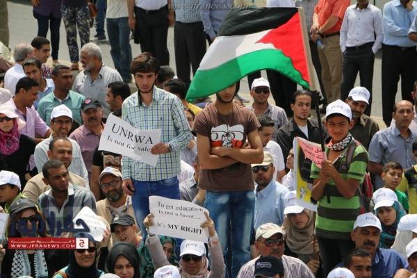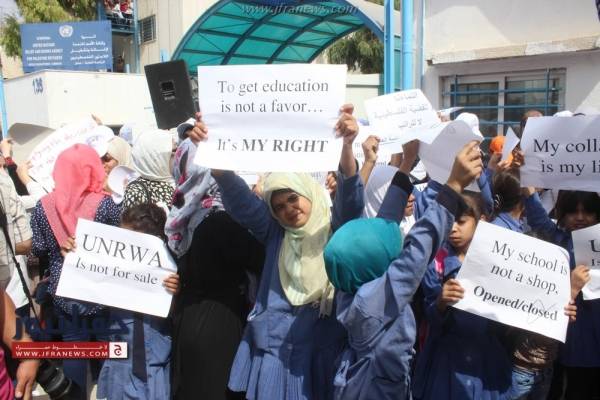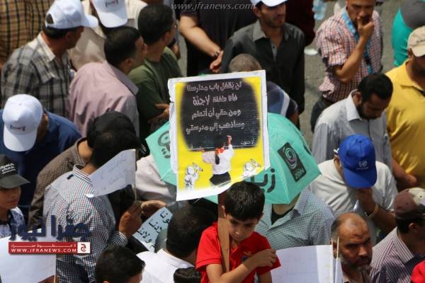 عمال الأنوروا يتوقفوا عن العمل إحتجاجاً على قرار تقليص الخدمات (صور)