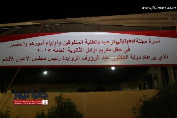 للعام الثامن على التوالي اقامت مجلة نفرتيتي حفلها الخاص بتكريم أوائل الثانوية العامة برعاية رئيس مجلس الأعيان عبد الرؤوف الروابدة وبحضور عدد من الشخصيات السياسية والاعلامية المعروفة في ساحة مطعم قرية النخيل.
