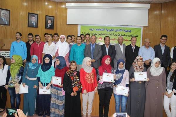 اقيم يوم السبت 29-8-2015تمام الساعة 6 مساءا في غرفة تجارة اربد حفل تكريم من جمعية الافاق الخيرية للتعليم للطلاب المتفوفين في الثانويه العامه بالتعاون مع مؤسسة البيلسان للعمل الانساني في محافظة اربد برعاية النائب سمير عقل عويس .