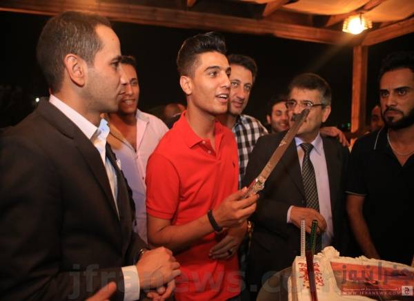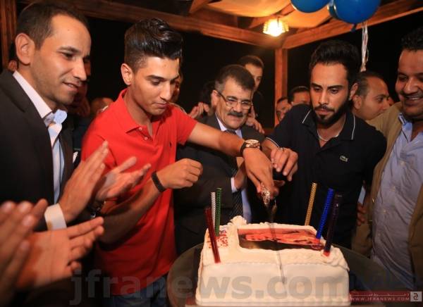 جفرا نيوز - احتضن مطعم Q8 في جبل عمان ليلة أمس الثلاثاء حفلا صاخبا للاحتفال بعيد ميلاد الفنان الفلسطيني محمد عساف ، وحضره جهمور حاشد من محبي الفنان الفلسطيني وفنانون وصحفيون أردنيون وعرب .