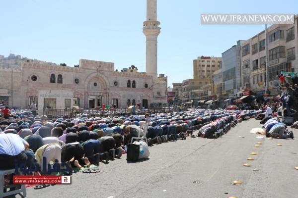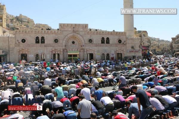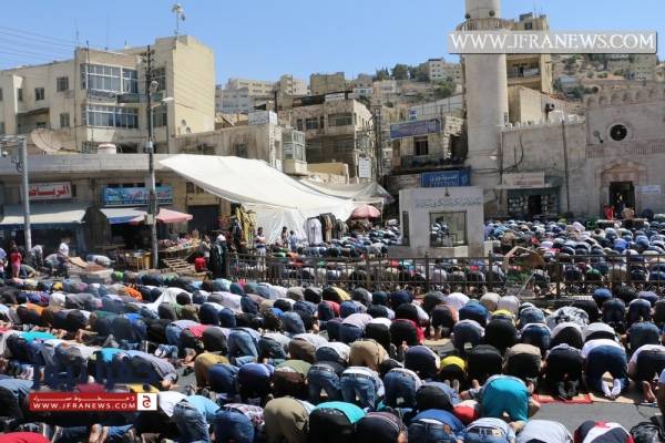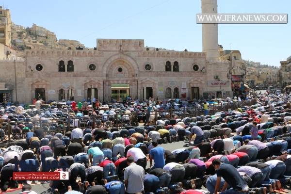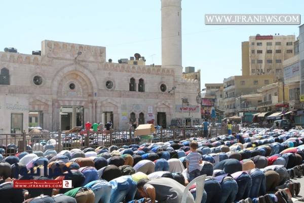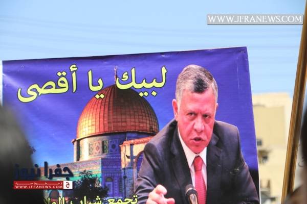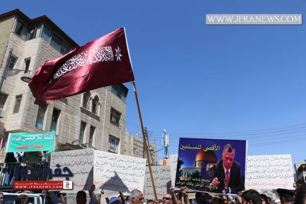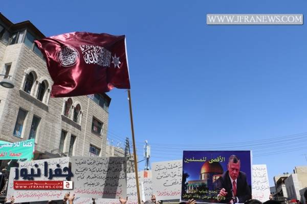 انطلقت مسيرة غاضبة من أمام الجامع الحسيني في وسط البلد بعمّان بعد صلاة الجمعة حمل المشاركون خلالها الراية الهاشمية التي تسلمها الجيش مؤخراً من الملك عبد الله الثاني، وردد المشاركون شعارات تؤكد على "أن المسجد الأقصى ما بده سجاد."