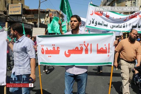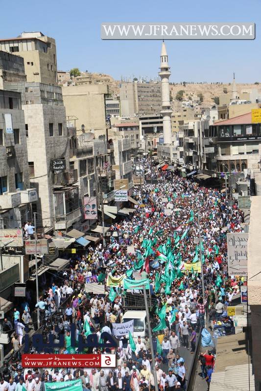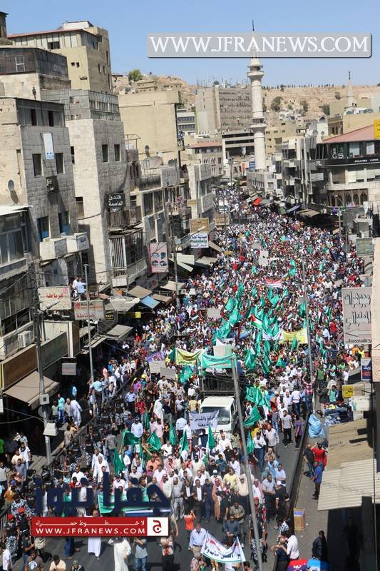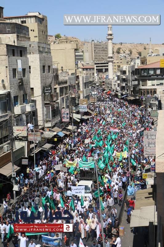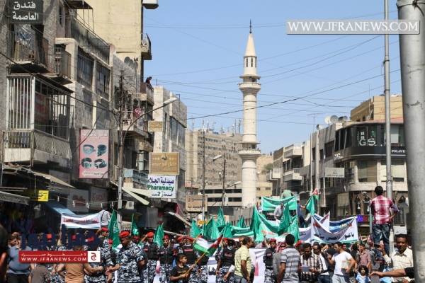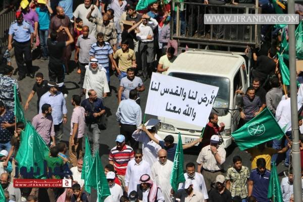 وكانت الحركة الإسلامية دعت في بيان صادر عن حزب جبهة العمل الإسلامي إلى المشاركة في مسيرة الغضب التي خرجت في وسط البلد.