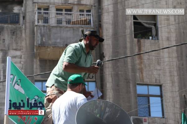 وردد المشاركون هتافات منها "يرحم روحك يا عياش كنت معلم على الأوباش.. لا عباس ولا حكام الأقصى بده القسام.. الأقصى ما بده سجاد الأقصى بده أحرار."