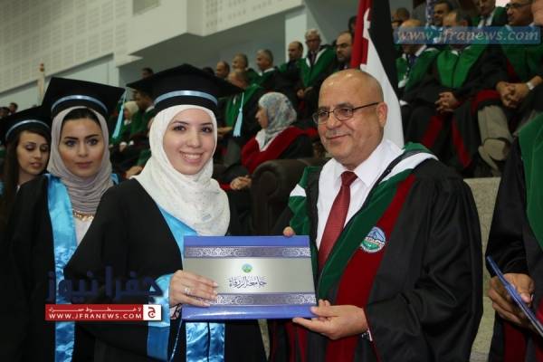 وفي نهايه الحفل الذي حضره رئيس مجلس ادارة شركة الزرقاء للتعليم والاستثمار الدكتور محمود ابو شعيرة، ونائب رئيس الجامعة الاستاذ الدكتور نانسي هاكوز، وعمداء الكليات، وأعضاء الهيئتين التدريسية والادارية، وأهالي الطلبة، قام رئيس الجامعة بتكريم أوائل طلبة الكليات، وتسليم الشهادات للخريجيين.