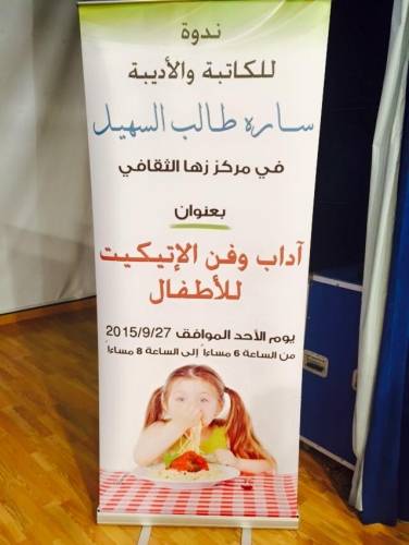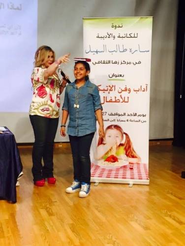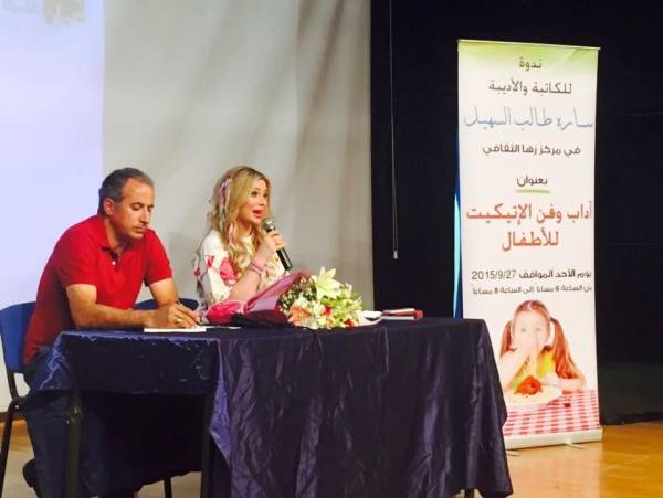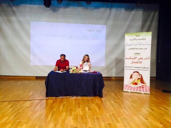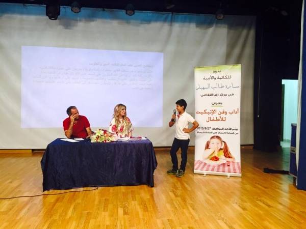 جفرا نيوز - عقدت الكاتبة والأديبة سارة طالب السهيل وبالتعاون مع مركز زها الثقافي، ندوة ثقافية وتعليمية بعنوان : "آداب وفن الإتيكيت للأطفال". وبحضور عدد غفير من الأطفال وذويهم، قامت السهيل بتثقيف وتعليم صغار السن عن آداب الطعام والأخطاء الشائعة على المآئدة، بالإضافة الى أساليب المخاطبة والتعامل اللبق سواءا مع اقرانهم في المدرسة او مع ذويهم والاكبر منهم سنا.