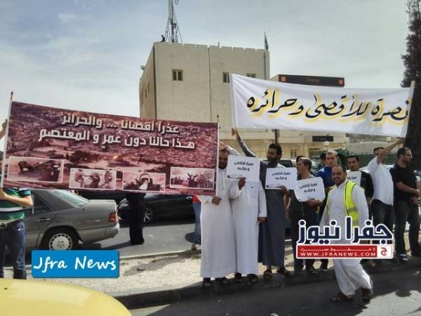 في الوقت الذي منعت فيه قوات الامن والدرك وقفة لحزب التحرير لنصرة الاقصى في مدينة اربد وفضت وقفة اخرى في شارع الصحافة في مدينة عمان نفذ حزب التحرير وقفتين واحدة في منطقة حي نزال في مدينة عمان والاخرى على دوار معصوم في مدينة الزرقاء