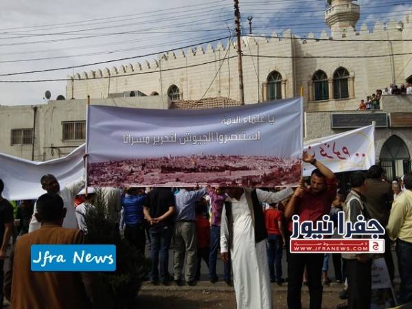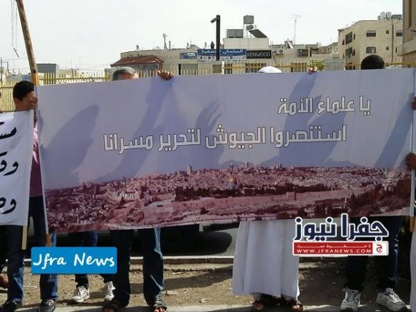 وقد رفعت في الوقفات لافتات ويافطات تذكر بان الطريق لانقاذ المسجد الاقصى وكل فلسطين لا يكون الا بتحريك جيوش المسلمين وفي مقدمتهم الجيش العربي