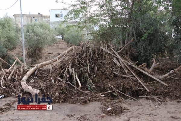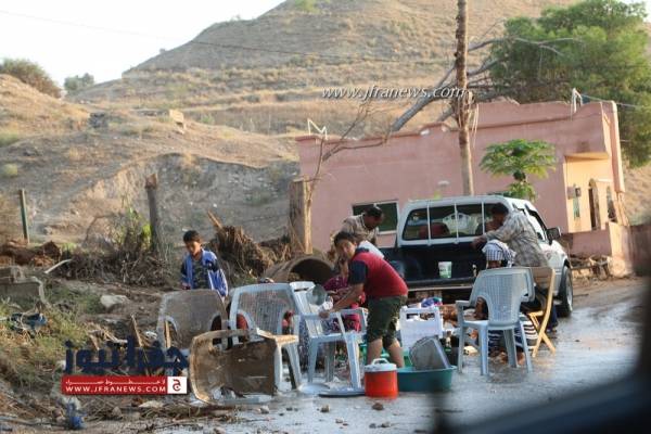 وقال الحاج ابو سالم ايضا ان الشركة المقاولة قامت بردم مخارج الوادي وادت الى فيضان المياه على المنازل وعلى المزارع و تضررت السيارات ونفوق اعداد من الحيوانات و 21 خلية نحل وجائنا صباح يوم امس وزير الاشغال ليطلع على حالتنا وعلى الاوضاع الا اننا لغاية الان نعوم بالمياه ولم ياتي من يساعدنا