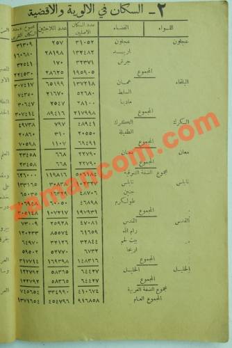 إحصاء نادر لسكان الأردن على مستوى الألوية والأقضية قبل 60 عاما - صورة