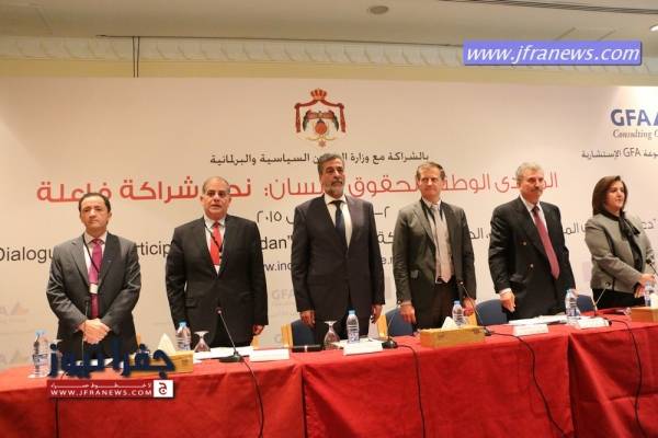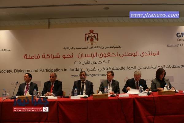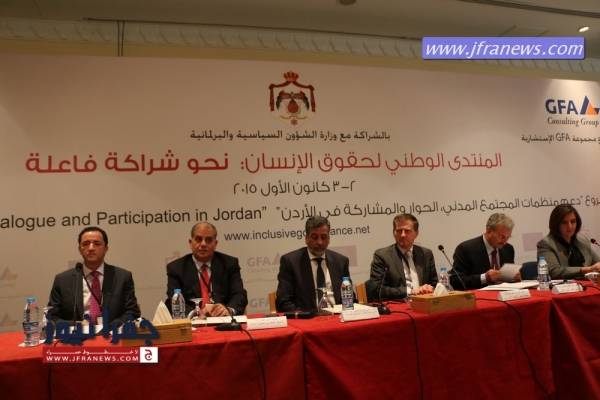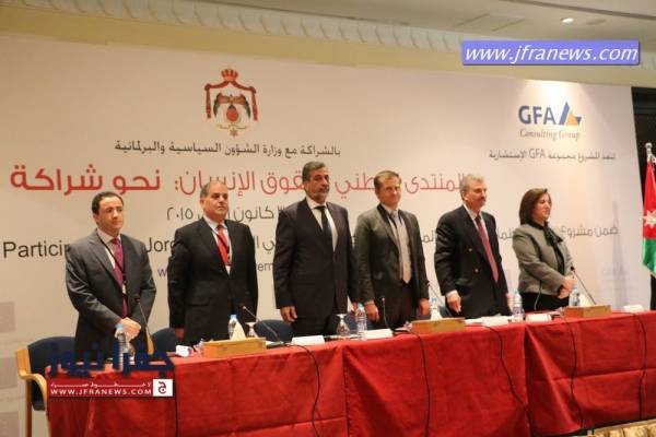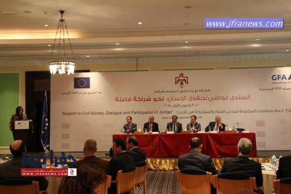 مندوباً عن رئيس الوزراء عبد الله النسور افنتح صباح اليوم الاربعاء وزير الشؤون السياسية والبرلمانية د.خالد الكلالده المنتدى الوطني لحقوق الإنسان (نحو شراكة فعالة) والتي حضرها عدد من الوزراء والنقباء واصحاب السعادة وذلك بمبادرة من وزارة الشؤون السياسية والبرلمانية ومكتب المنسق الحكومي لحقوق الانسان التي يديرها الاستاذ باسل الطراونة وبالتعاون مع المركز الوطني لحقوق الانسان وبمشاركة واسعة من منظمات المجتمع المدني وفعاليات قضائية وقانونية وإعلامية ونقابية والمؤسسات الوطنية والقطاع الخاص وبدعم من مشروع "دعم المجتمع المدني , الحوار والمشاركة " الممول من الاتحاد الاوروبي .