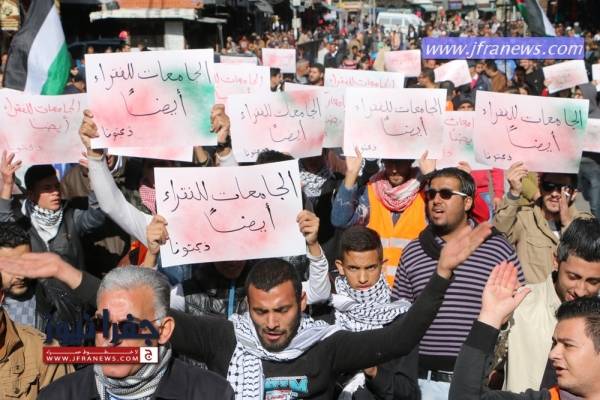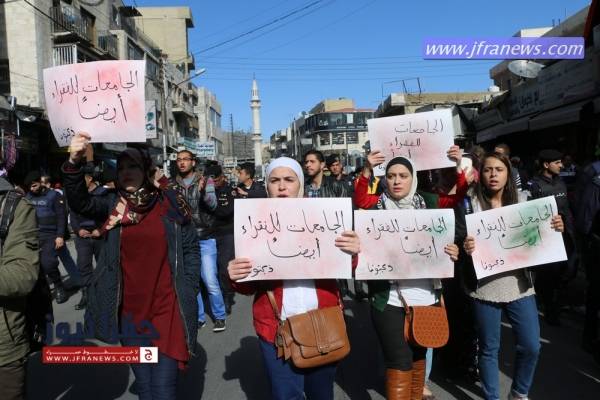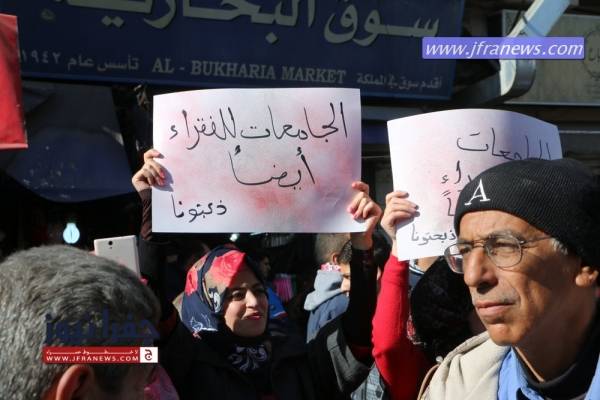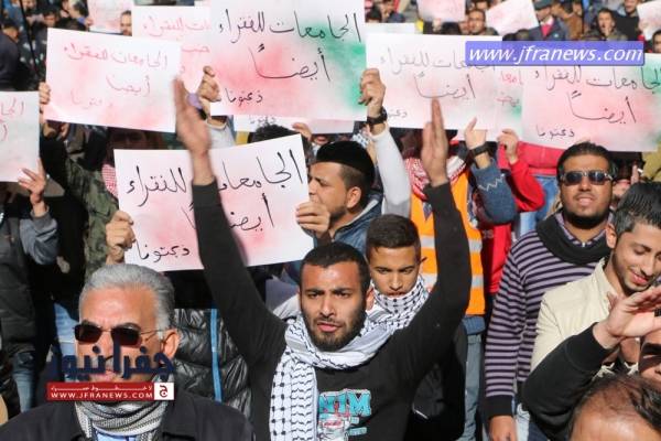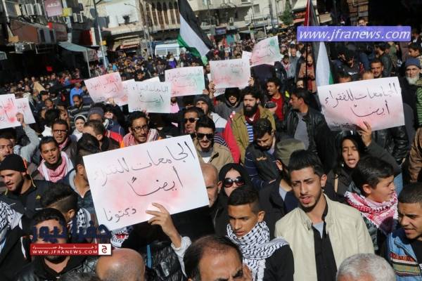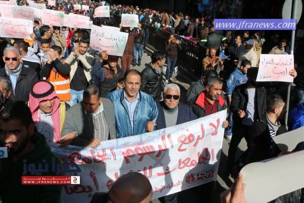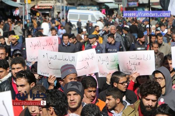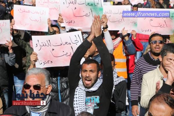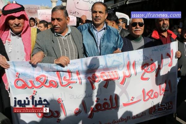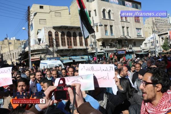 وأشار دعاس إلى أنه تم تنظيم مزاد علني ساخر خلال المسيرة لبيع التخصصات في الجامعات الأردنية لمن يدفع أكثر .