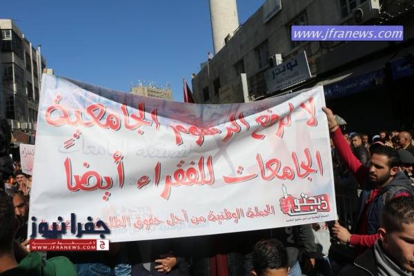 نظمت الحملة الوطنية من أجل حقوق الطلبة "ذبحتونا" مسيرة بعد صلاة الجمعة من المسجد الحسيني تحت شعار "الجامعات للفقراء أيضاً" تخللها مزاد علني "ساخر" لبيع التخصصات في الجامعات لمن يدفع أكثر .