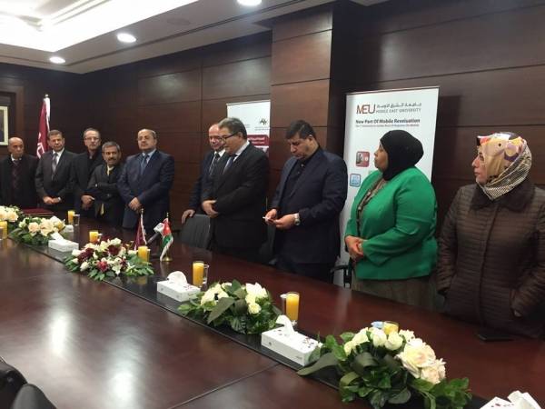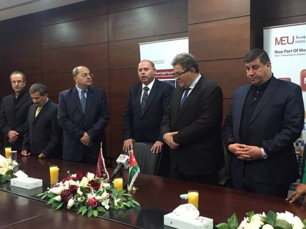 ووقع عن جامعة القدس رئيسها الدكتور عماد ابو كشك وعن جامعة الشرق الاوسط رئيسها الدكتور ماهر سليم بحضور كل من رئيس لجنة فلسطين النيابية النائب المحامي يحيى السعود والنائب الفلسطيني احمد الطيبي والنائب السابق حمادة فراعنة واعضاء لجنة فلسطين النيابية النائب ردينة العطي ونجاح عزة.