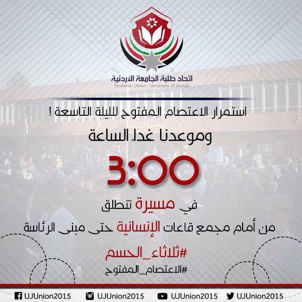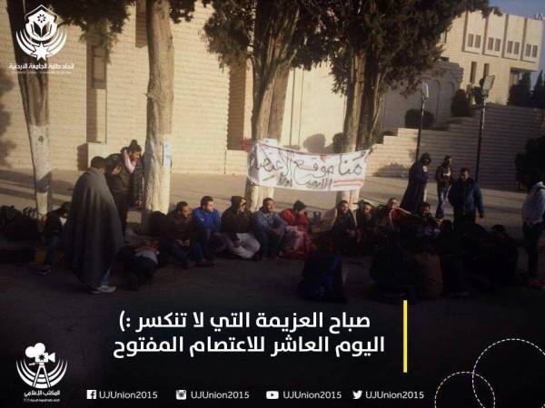 "الاردنية" تؤكد التهديد بفض الاعتصام ..وذبحتونا تتضامن(صور)