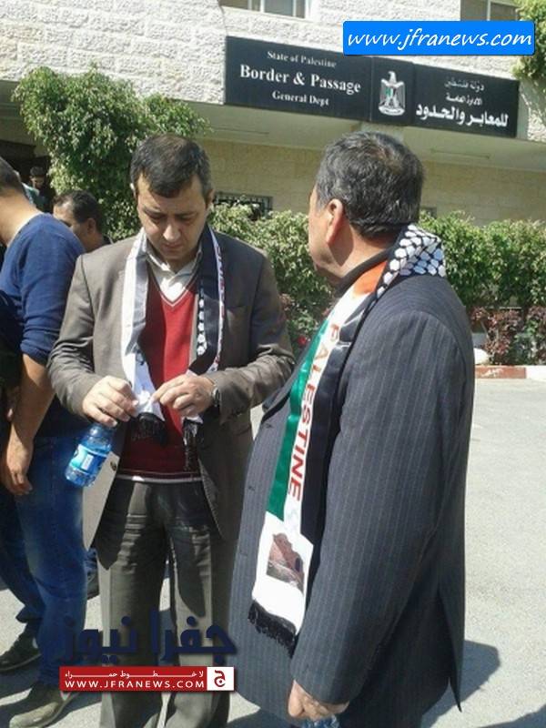 وكان في استقبال وجهاء العشائر عطوفة المحافظ / نظمي مهنا مدير عام الادارة العامة للمعابر والحدود و العقيد ركن حمزة الجياب نائب قائد منطقة اريحا والأغوار , ومدراء الاجهزة الامنية والمدنية في الادارة العامة للمعابر والحدود , وقادة وضباط الاجهزة الامنية الفلسطينية .