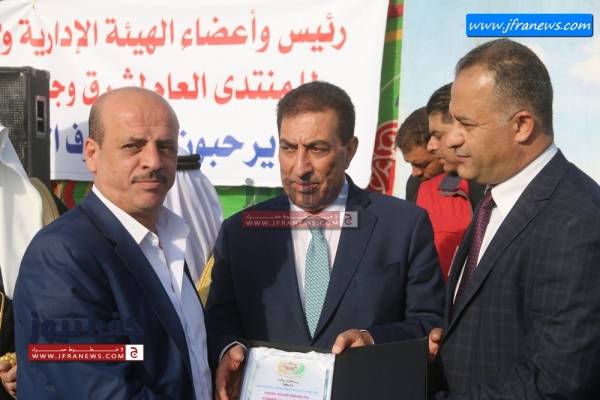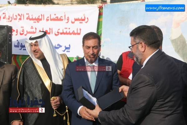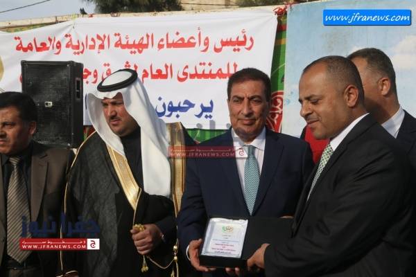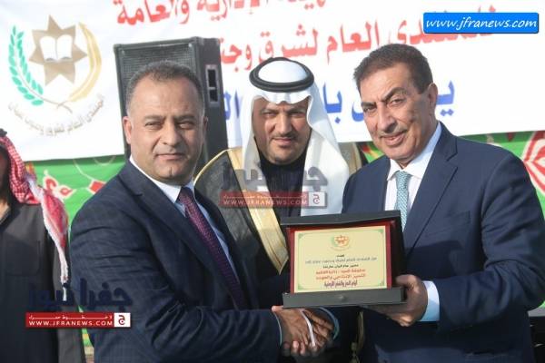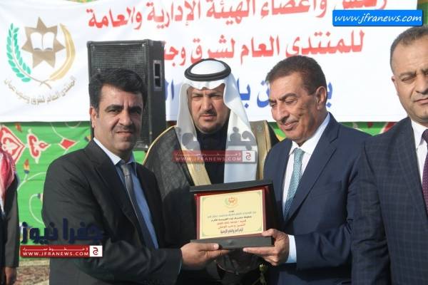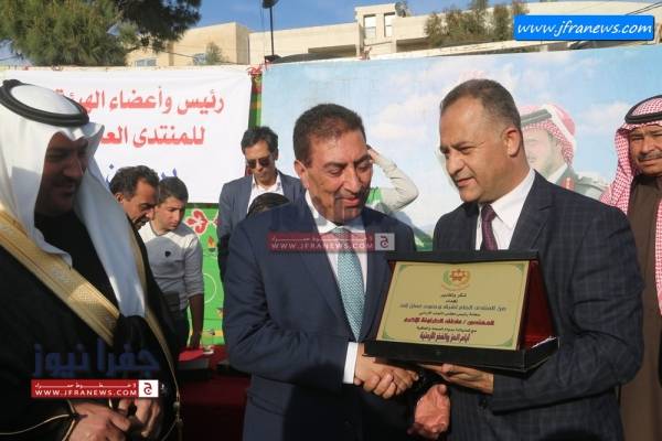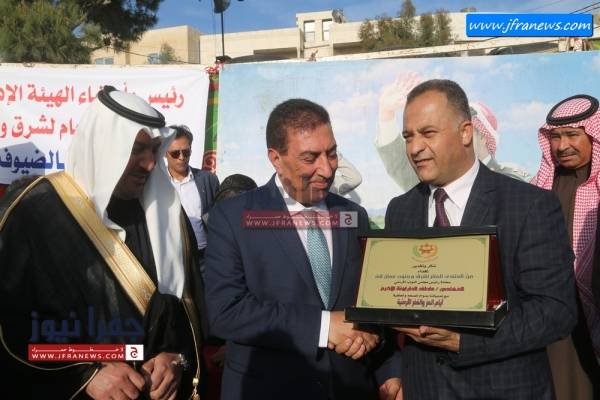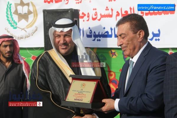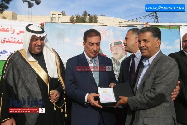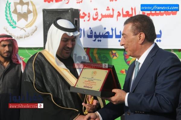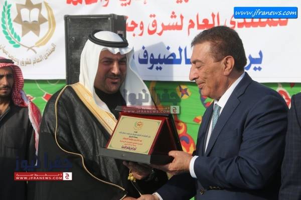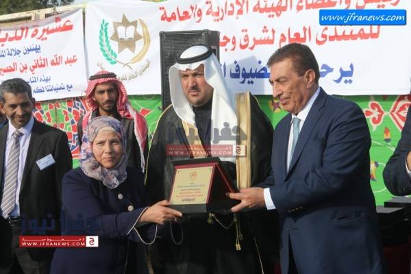 وفي الختام تسلم راعي الحفل درع المنتدى العام لشرق وجنوب عمان بعد ان وزع الدروع على عدد من ذوي الشهداء وممثلين عن المؤسسات الرسمية والامنية والخاصة ومن ضمن المكريمين المهندس عاطف الطراونة والنائب الدكتور خير أبو الصعليك والدكتور زكريا الشيخ والشيخ عبد الكريم الحويان وعريفة الحفل الاعلامية الأردنية رشا عصفور لمشاركتهم بالاحتفال.