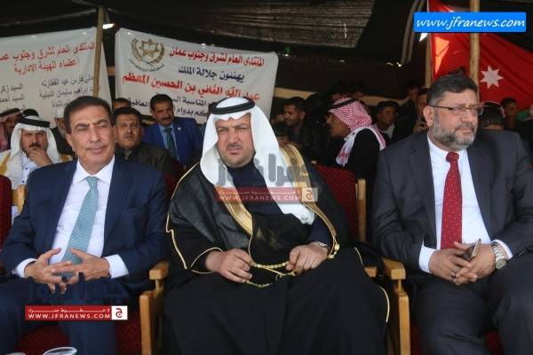 تحت رعاية رئيس مجلس النواب الاردني المهندس عاطف الطراونة نظم المنتدى العام لشرق وجنوب عمان 'احتفالا بمناسبة مئوية الثورة العربية الكبرى وذكرى معركة الكرامة عيد الجيش الأردني وعيد ميلاد جلالة الملك عبدالله إبن الحسين المعظم اليوم السبت بحضورالنائب الدكتور خير ابو صعيليك والدكتور زكريا الشيخ والمهندس عبدالهادي المحارمة ومتصرف لواء القويسمة محمد خلف الفايز وشيخ عبد الكريم الحويان وعدد من شيوخ ووجهاء المنطقة.