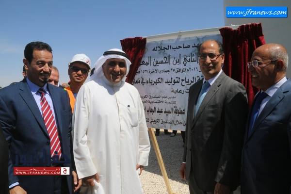افتتح وزير الطاقة والثروة المعدنية الدكتور إبراهيم سيف ومدير عام الصندوق الكويتي للتنمية الاقتصادية العربية عبد الوهاب البدر و رجل الاعمال و السفير عوني مطيع رئيس مجلس الحكماء لاتحاد المصدرين والمستوردين العرب التابع لجامعة الدول العربية اليوم الأحد في مدينة معان مشروع طاقة الرياح لتوليد الكهرباء والممول من الصندوق الكويتي للتنمية الاقتصادية العربية بكلفة 148 مليون دولار والمتوقع أن تبلغ استطاعته 80 ميجا واط والذي يهدف إلى دعم الاقتصاد الوطني وتطوير منطقة معان.