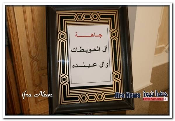 - توجهت جاهة كريمة من عشيرة الحويطات واصدقائهم وانسبائهم لديوان عشيرة عبندة الجمعة لطلب يد صاحبة الصون والعفاف نهلة عمر عبندة لأبنهم محمد عبدالله الحويطات .