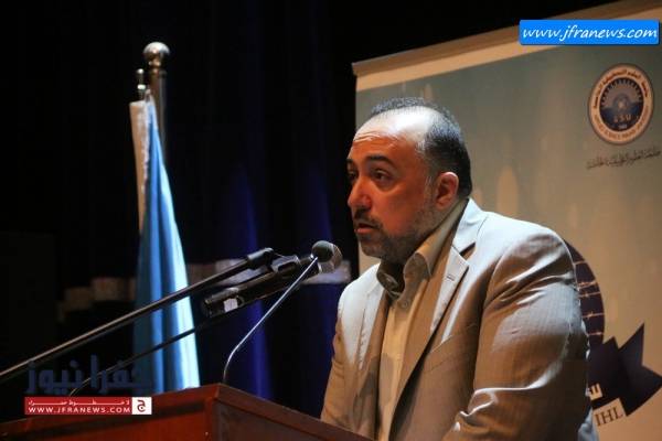 عميد كلية الحقوق في جامعة العلوم التطبيقية الخاصة الاستاذ الدكتور طالب حسن قال في كلمته ان انعقاد المؤتمر جاء في ظل ظروف عصيبة تمر بها المنطقة ومن تماد في نشر الرعب والاغتصاب وحرق الشجر والبشر، موضحا ان الهدف من المؤتمر هو دق جرس الانذار وبقوة على هذا التمادي وهذه الانتهاكات اضافة الى جلب الانتباه بلزوم التأكيد على أنسنة القانون الدولي لحقوق الانسان.