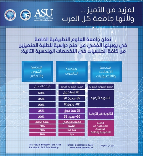 جامعة العلوم التطبيقية الخاصة تعلن عن توافر منح دراسية في كلية الهندسة