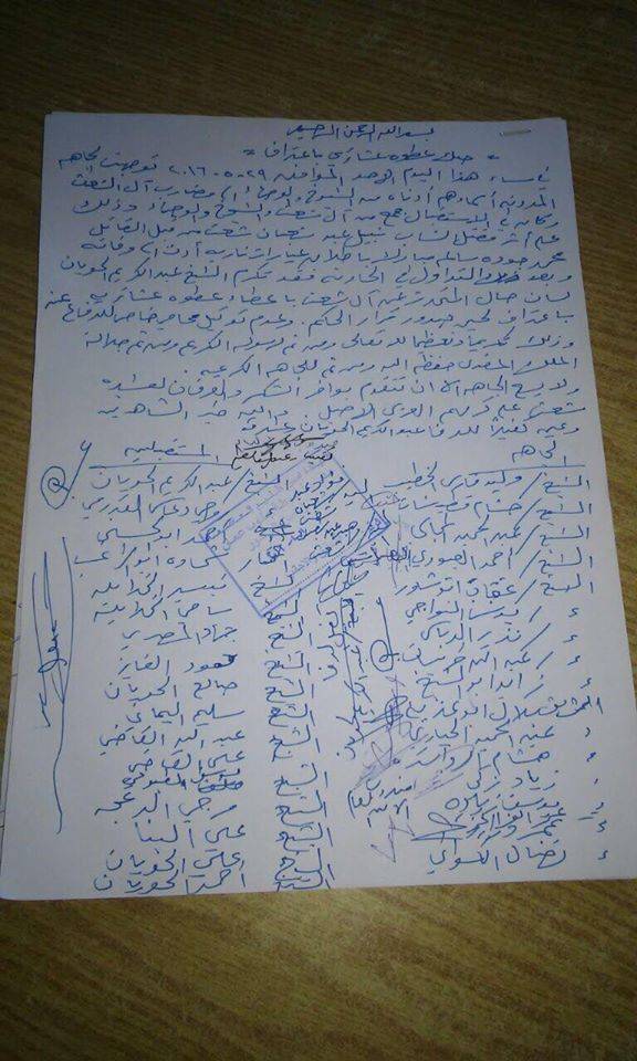 صك عطوة عشائري اعتراف قتل بين عشيرة ابو شعث و عشيرة مبارك "صور "