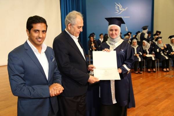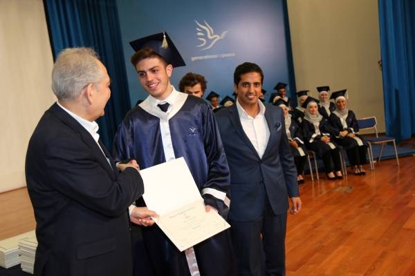 كما وقام معالي سمير الحباشنة راعي الحفل يرافقه المدير العام خالد العدوان بتسليم الشهادات للخريجين ، وقد قدمت إدارة الأكاديمية درعا تذكاريا لمعاليه تقديرا منها لتفضله برعاية الاحتفال .