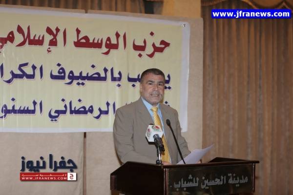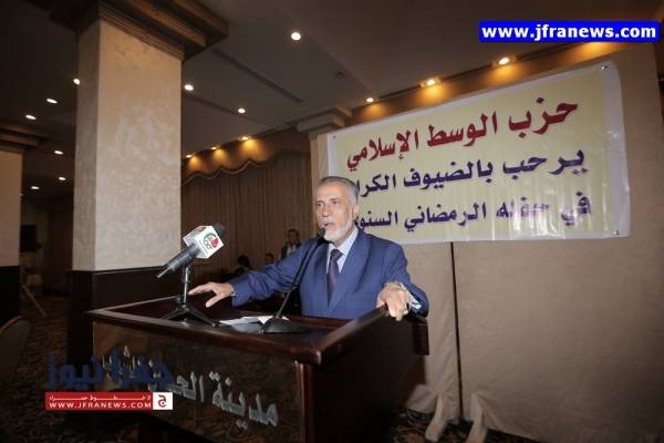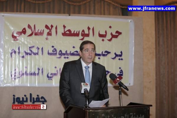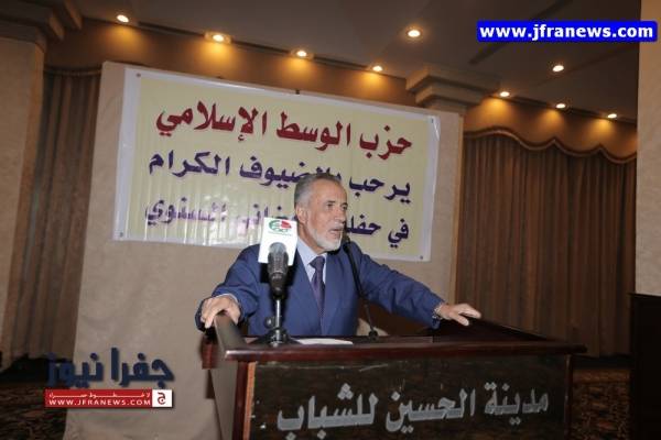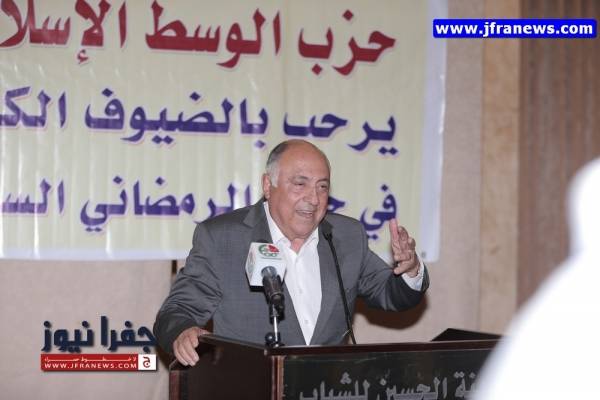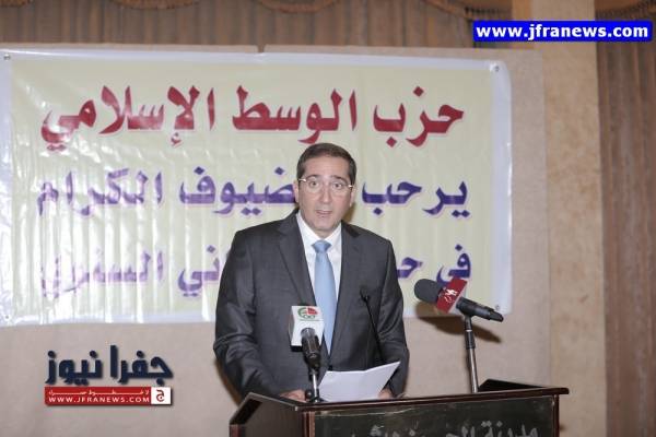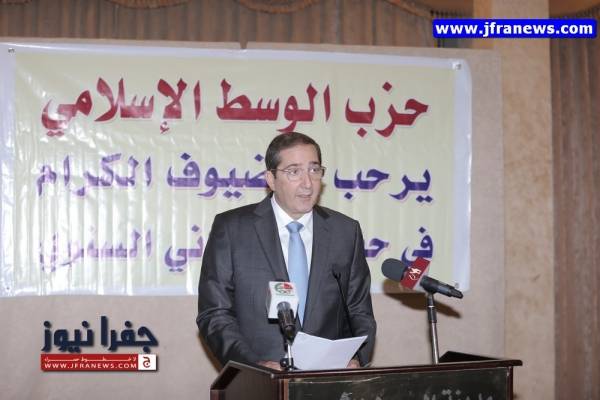 تقبل الله طاعاتكم وكل عام وأنتم بخير بحلول شهر المغفرة والبركة والتكافل، ويسرني أن اكون في هذه الأمسية المباركة، مع هذه الذوات من قيادات الرأي والفكر والعمل العام، ومن الأخوة والأصدقاء، ونحن نلتقي بدعوة كريمة من حزب الوسط الإسلامي، الذي عودنا كل عام على مثل هذا اللقاء الجامع، والذي يعطي الصورة الصادقة عن وحدة الأردنيين وتآلفهم وهذا النسيج الوطني البهي، حيث يلتقي الأردنيون من مختلف اتجاهاتهم وخلفياتهم الثرية المتنوعة، على الخير والإخلاص لهذا الوطن والولاء لقيادته الهاشمية المباركة.