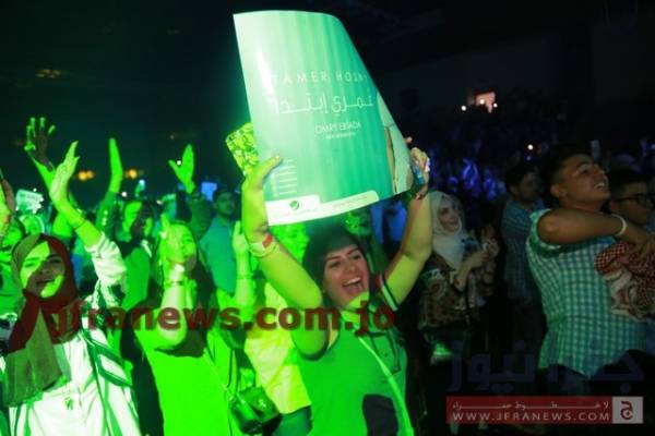بالصور والفيديو .. تامر حسني يستمتع مع الجمهور الاردني في "الارينا"