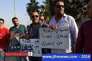 وناشد المحتجين جلاله الملك بالتدخل وانقاذهم من الافلاس بسبب قرارت الحكومة الغير مدروسة ، املين منه تحقيق العداله ما بين تجاره السيارات المستعمله والوكلاء .