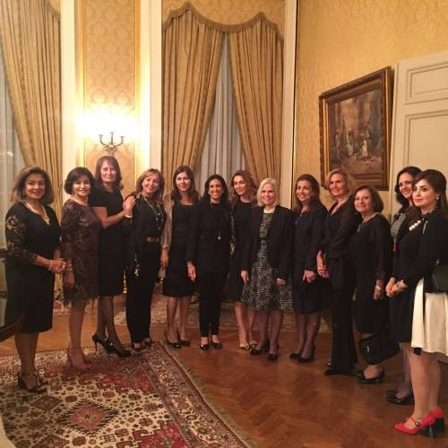 وحضر العديد من الشخصيات النسائية ومنهم الفنانه يسرا ومنى جمال عبد الناصر ولطيفة عقيلة السفير البحريني ورنا عقيلة السفير الفلسطيني