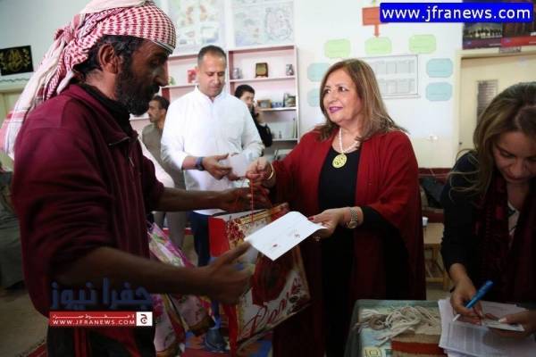 نظم ملتقى عقيلات السفراء الاردنيين في النادي الدبوماسي زيارة الى مدينة التبراء ووادي موسى لتقديم مساعدات نقدية وعينية الى 63 اسرة من ابناء الاسر العفيفة في المنطقة .