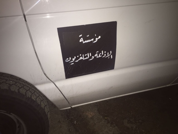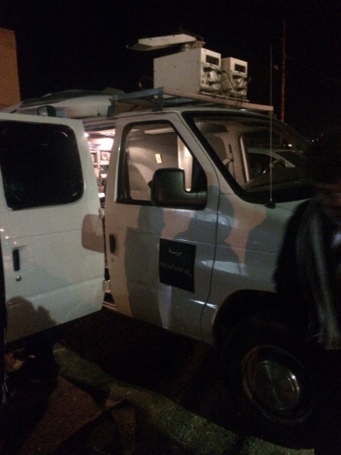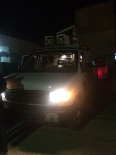 تجمع مواطنون امام عربة النقل المباشر للتلفزيون الاردني خلال المداهمة الامنية التي شهدتها بلدة قريفلا في محافظة الكرك.