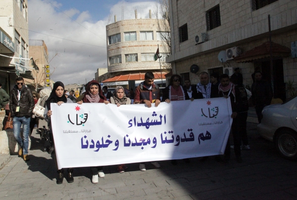 في حين تشارك الناشطون الشبابيون مسلمون ومسيحيون قراءة الفاتحة سوية على أرواح الشهداء، ينضم إليهم وفد شبابي فلسطيني، ورفعت الجموع الشبابية التي رفعت شعارات مناهضة للإرهاب والتطرف والأعمال الإجرامية والمشددة على الموقف الوطني الأوحد في مواجهة كل الكارهين لمسيرة الأردن المعطاءة.