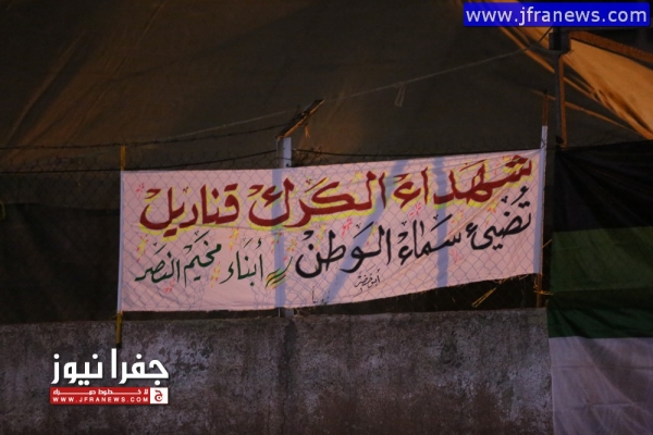أقيم مساء اليوم الأحد في مخيم جبل النصر بالعاصمة عمان خيمة عزاء تكريماً لشهداء الحق و الواجب الذين سالت دمائهم الزكية دفاعاً عن أمن الوطن الذي أقامها أبناء المخيم والفعاليات الشعبية .