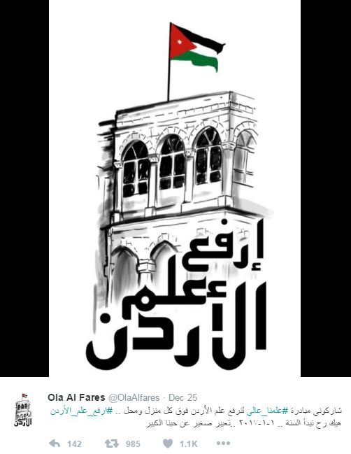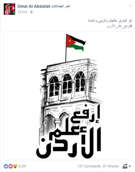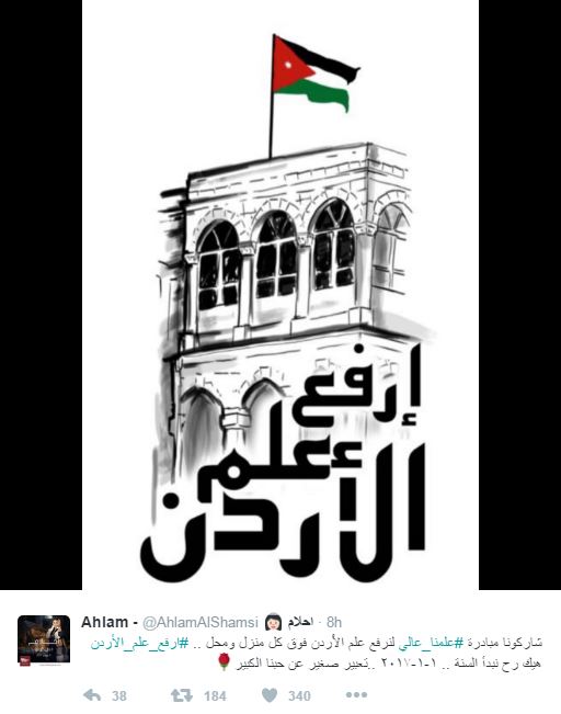 حيث أعلن الرئيس التنفيذي لشركة زين أحمد الهناندة عبر حساباته الرسمية على مواقع التواصل الإجتماعي عن دعم هذه المبادرة قائلاً: "معا لرفع علمنا عاليا في استقبال العام الجديد وليكون احتفال العام الجديد وطنيا و ليكون علمنا رمزا للاحتفال وتعبيرا عن حبنا للاردن الغالي سنوفر اعلاما للسيارات والمنازل و سنعلن عن أماكن توفرها قي كافة المناطق عاش الاْردن حرا ابيا وحفظ الله شعبه وقائده من كل شر #إرفع_علم_الأردن #حب_الاردن".